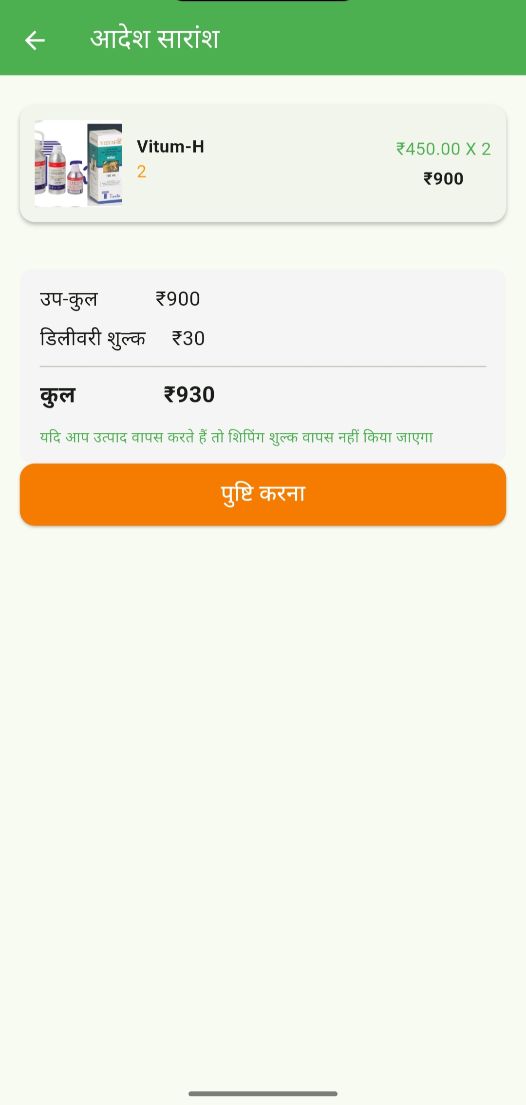 RD किसान ऐप पर आपको भारत की टॉप 10 फ़ार्मा कंपनियों के पशु-चिकित्सा उत्पाद एक ही जगह पर मिलेंगे। यहाँ आपको असली और ताज़ा स्टॉक, सही जानकारी और भरोसेमंद ब्रांड्स की गारंटी मिलेगी, ताकि आपके पशुओं की सेहत हमेशा बेहतरीन रहे।