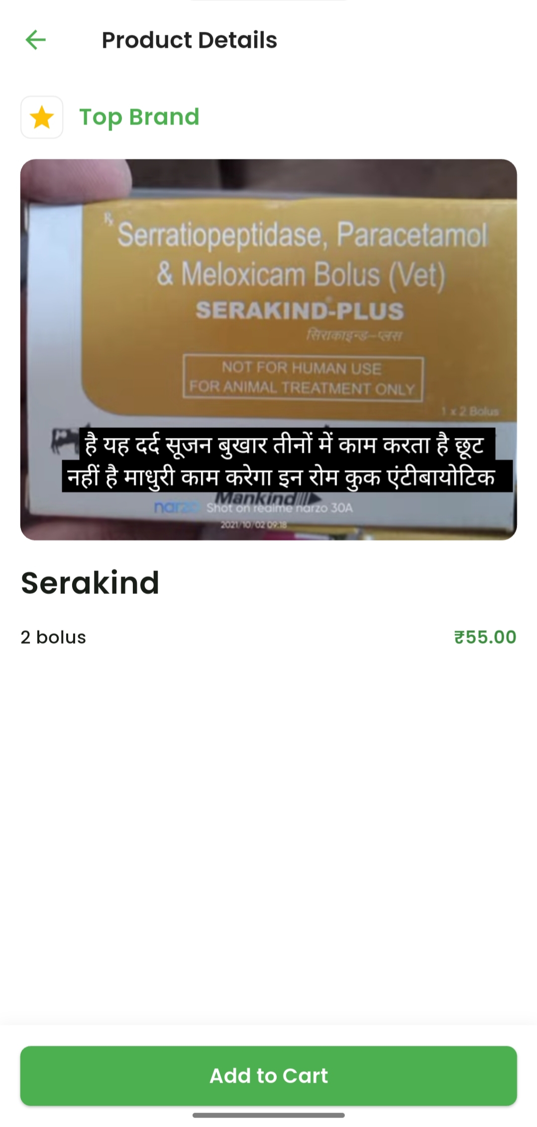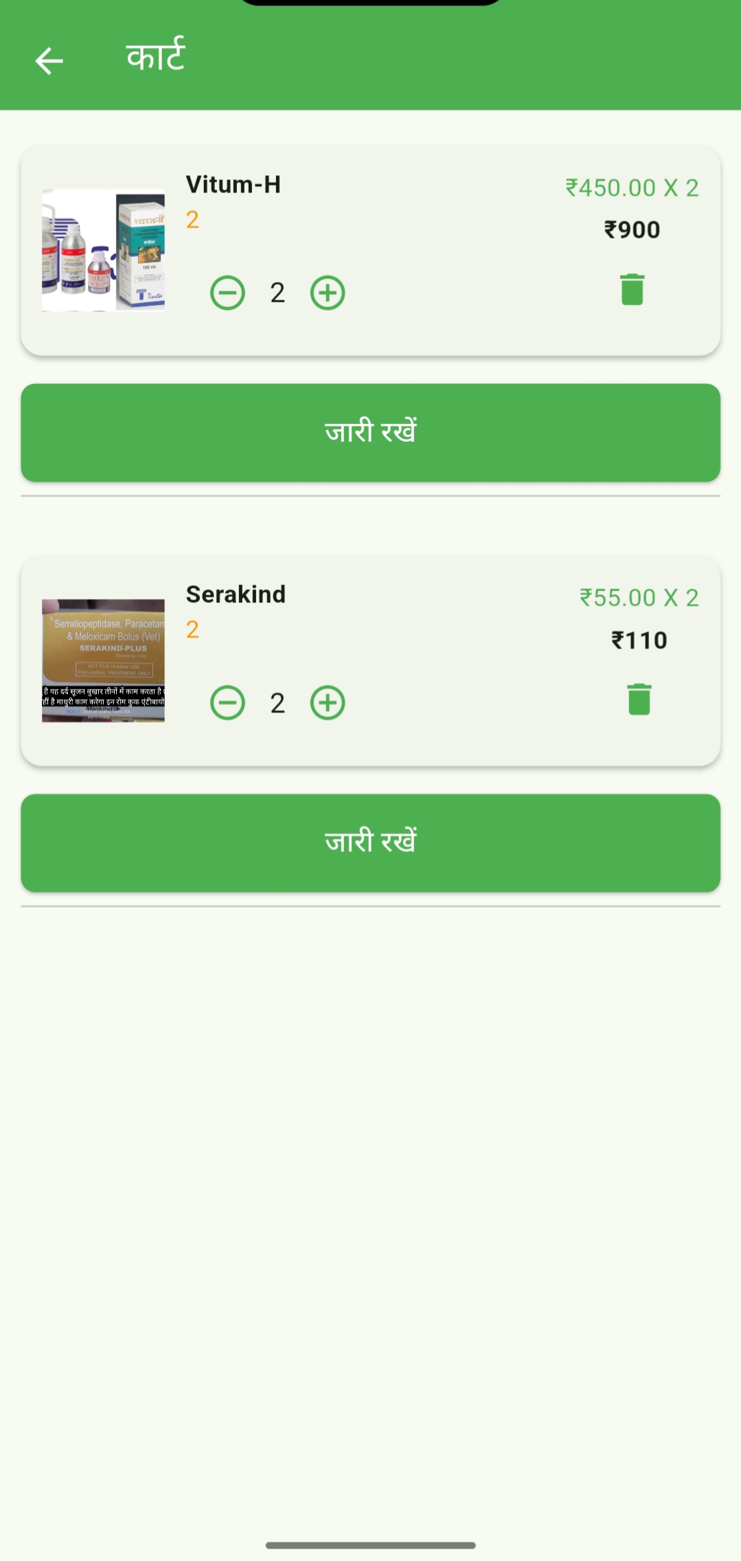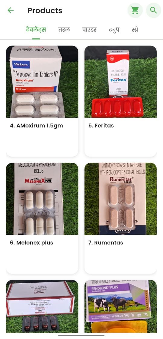 RD किसान ऐप पर आपको भारत की टॉप 10 फ़ार्मा कंपनियों के पशु-चिकित्सा उत्पाद एक ही जगह पर मिलेंगे। यहाँ आपको असली और ताज़ा स्टॉक, सही जानकारी और भरोसेमंद ब्रांड्स की गारंटी मिलेगी, ताकि आपके पशुओं की सेहत हमेशा बेहतरीन रहे।